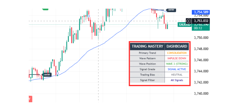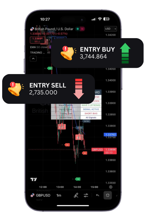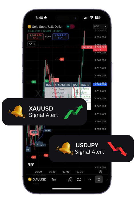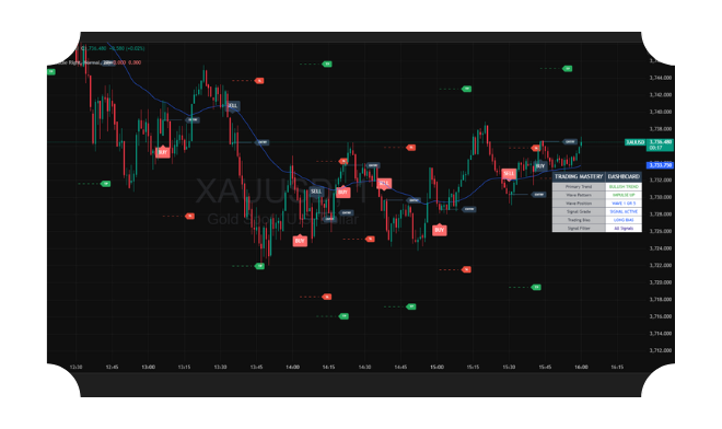 Trading Mastery confirms entries using support and resistance zones combined with wave direction.