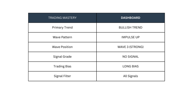 Trading Mastery provides a clear market summary on the dashboard, helping traders quickly understand market direction and filter signals for smarter decisions.